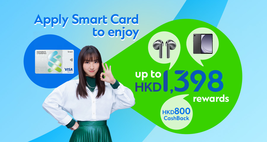 From now until 30 September 2025, new cardholder who successfully apply for a Smart Card and spend HKD3,500 or more within the first month after card issuance can choose a welcome gift of Samsung Galaxy Buds3 / Tab A9 or HKD800 CashBack. Terms & Conditions apply.