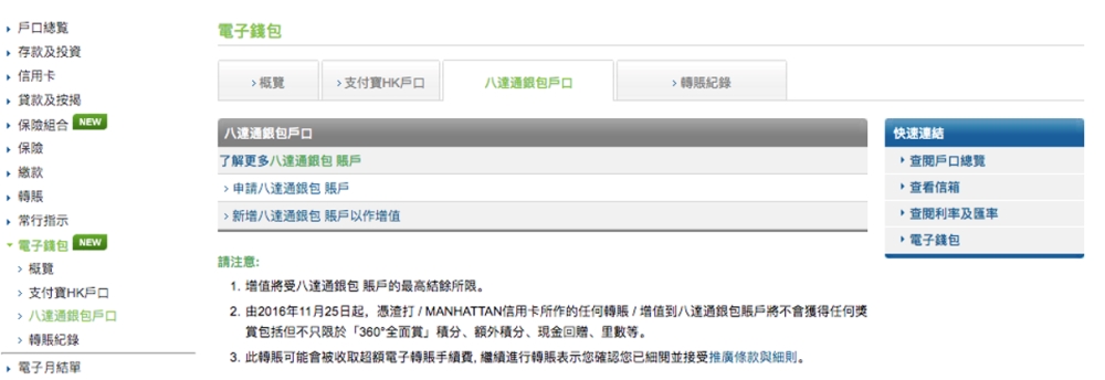 憑渣打 / MANHATTAN信用卡所作的任何轉賬 / 增值到八達通銀包將不會獲得任何獎賞包括但不只限於「360°全面賞」積分、額外積分、現金回贈、里數等。