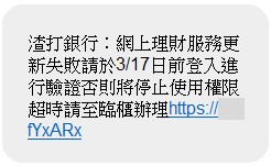 提防網絡罪犯!以下為近日的釣魚短訊攻擊: