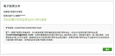- 部分公司行動通知書僅提供紙張版本,尚未能提供電子版本。因此,即使閣下已選用電子文件服務,本行仍會把此等公司行動通知書傳送至閣下的郵寄地址。有關詳情,請參閱常見問題。